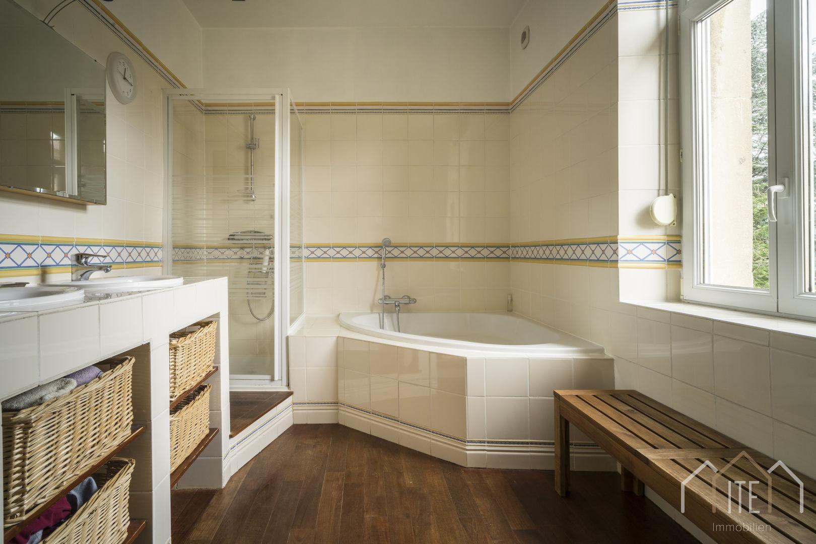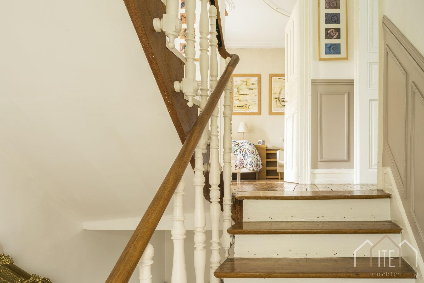 Restaurée en 2002, la maison de maître datant de 1904 a été rénovée tout en préservant son caractère et son authenticité : pavés d'époque, escalier en bois, hauts plafonds, parquet massif, moulures et carrelages d'époque (Villeroy & Boch peints à la main), rendent cet objet unique sur le marché.