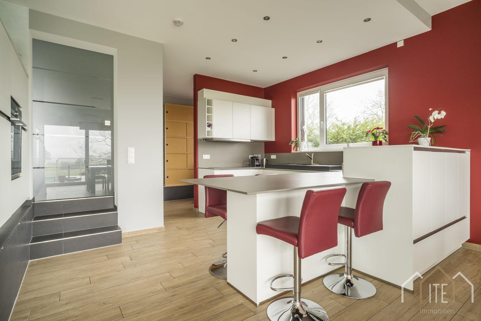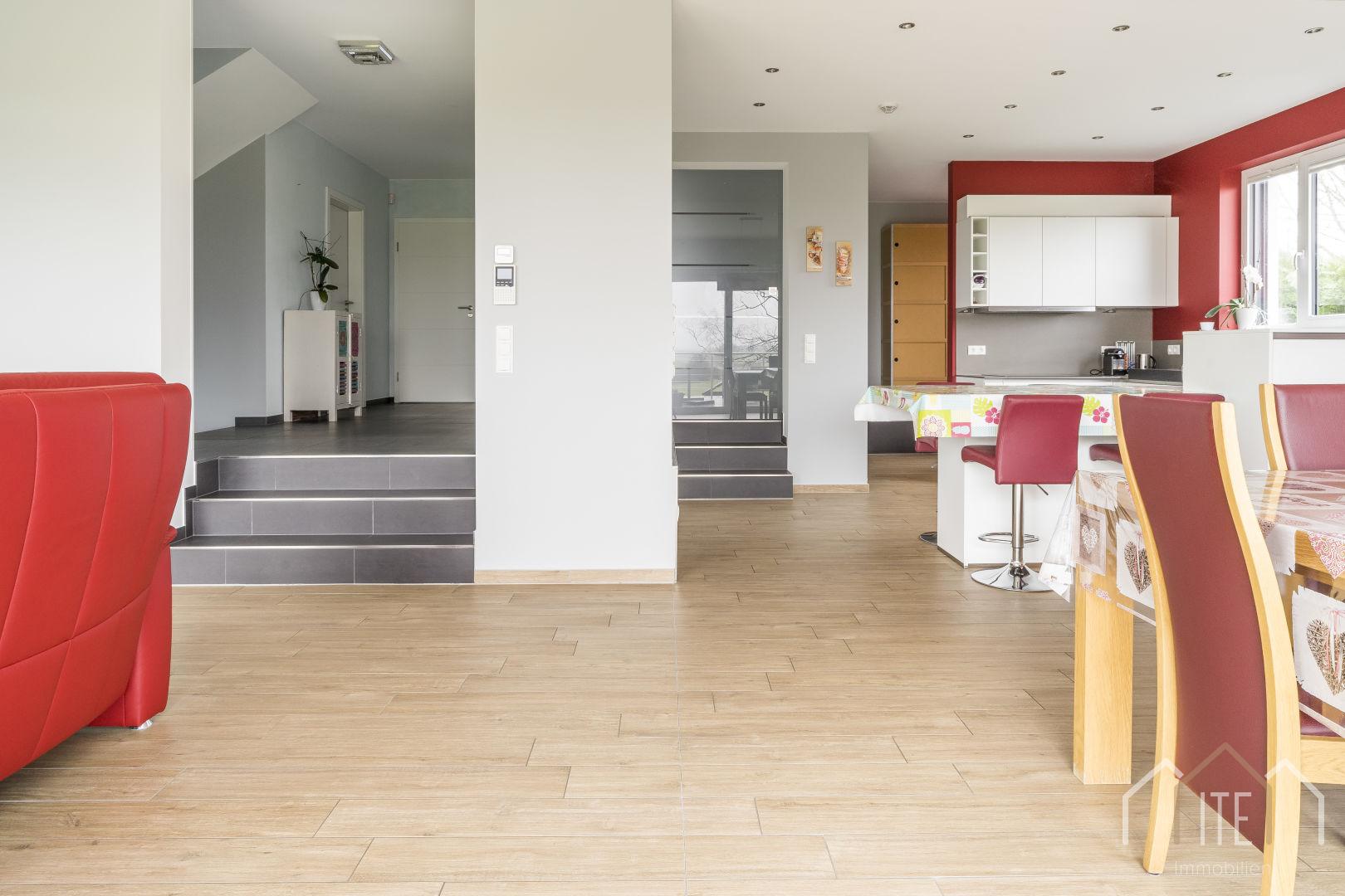 ITE Immobilien vous propose en exclusivité, cette superbe maison d'architecte de 2016, située sur un terrain de 11 ares, en bordure de zone verte dans la commune de Garnich.